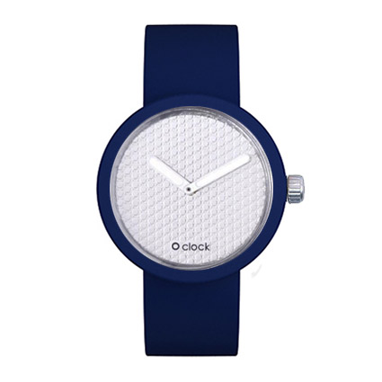 Zilver Pavé patroon als wijzerplaat met witte wijzers. Bandje: Oceaanblauw.