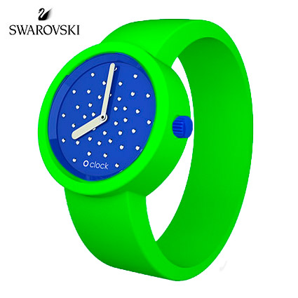 Fraai O clock horloge met Swarovski kristallen. Ideaal als cadeau. In de kleuren: Zwart, Creme, Tiffany, Sapphire, Emerald, Ruby, Blos, Turquoise, Grijs en Wit. Combineert ook goed met de vele andere kleuren bandjes!